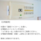 付属の「接着ファスナー」を使い、分電盤のメインスイッチ付近に「πでまも〜る」を取り付けてご使用ください。分電盤の両側面・前面・上部などに張り付けるだけ。簡単にお取付けできます。